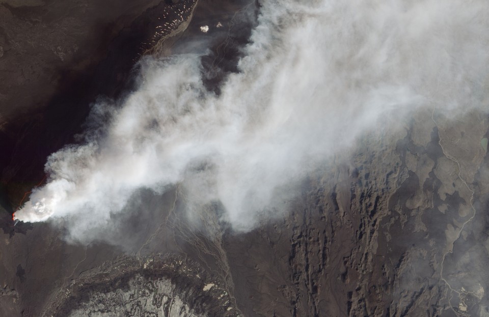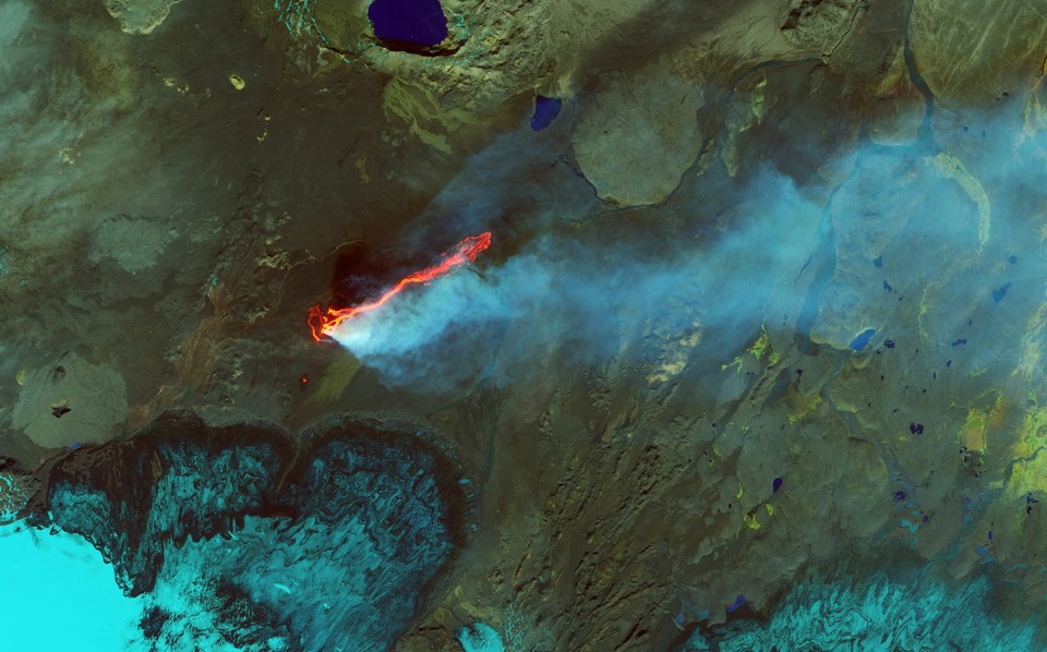 W rejonie islandzkiego wulkanu bardarbunga z jednej ze szczelin ciągle wydobywa się lawa.